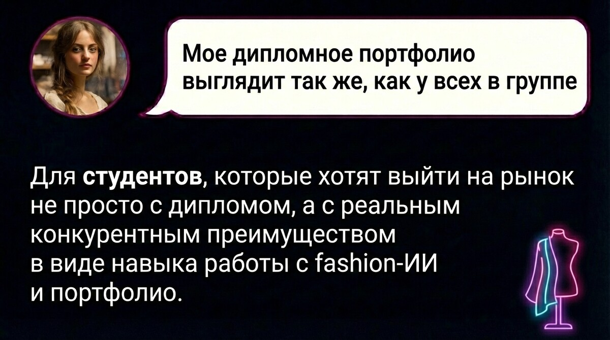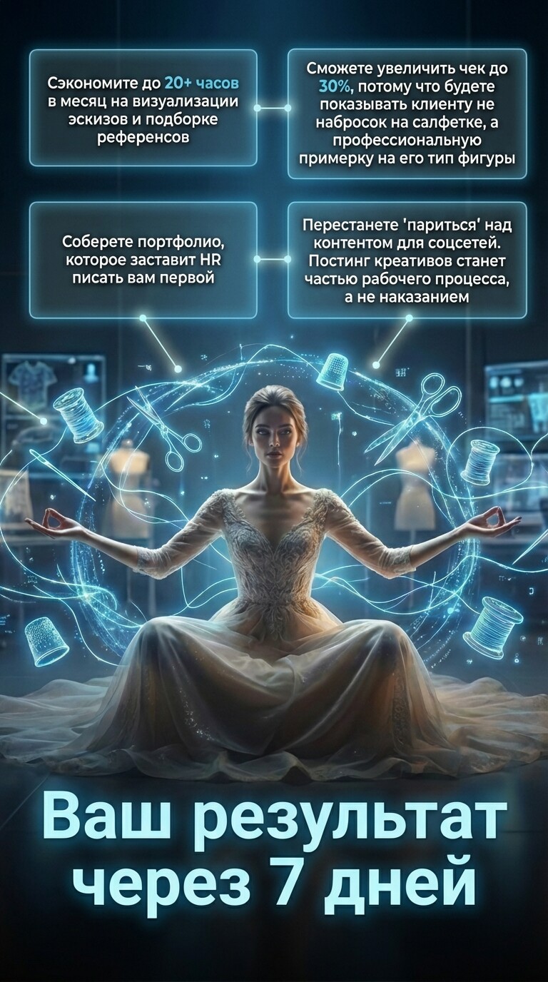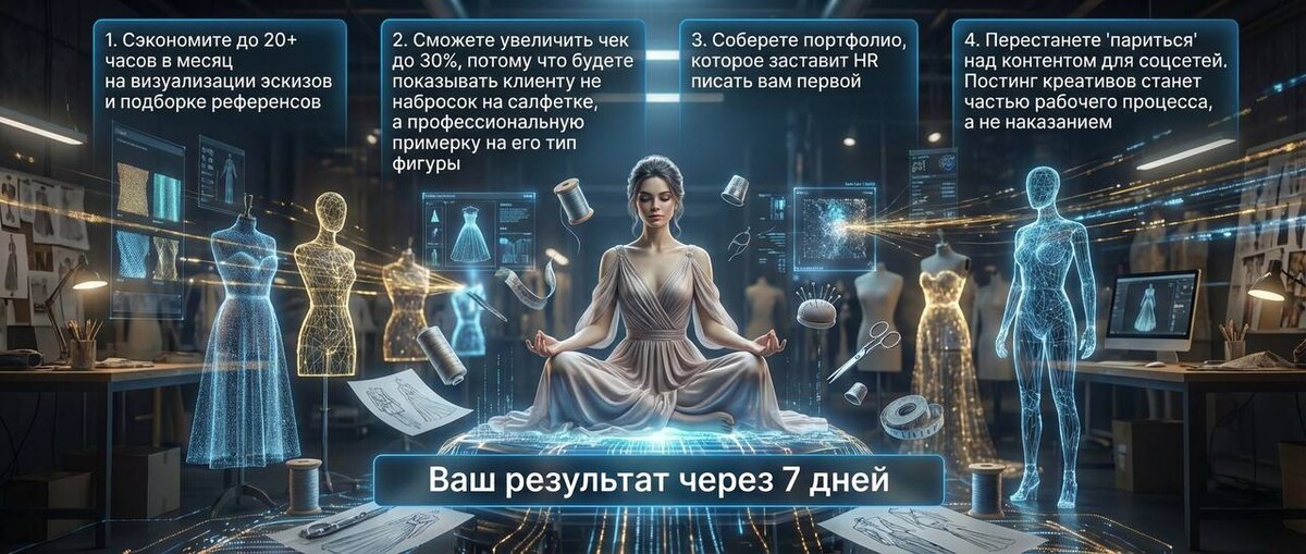 - Ключевой навык: Промпты для одежды. Как писать технически точные запросы, которые нейросеть поймет с первого раза.