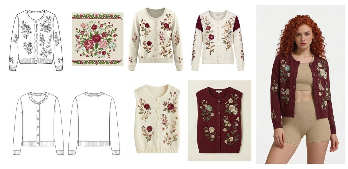 Превратим плоский эскиз в живую фотографию, неотличимую от студийной съемки, и научимся генерировать сложные принты с реалистичными вышивками.