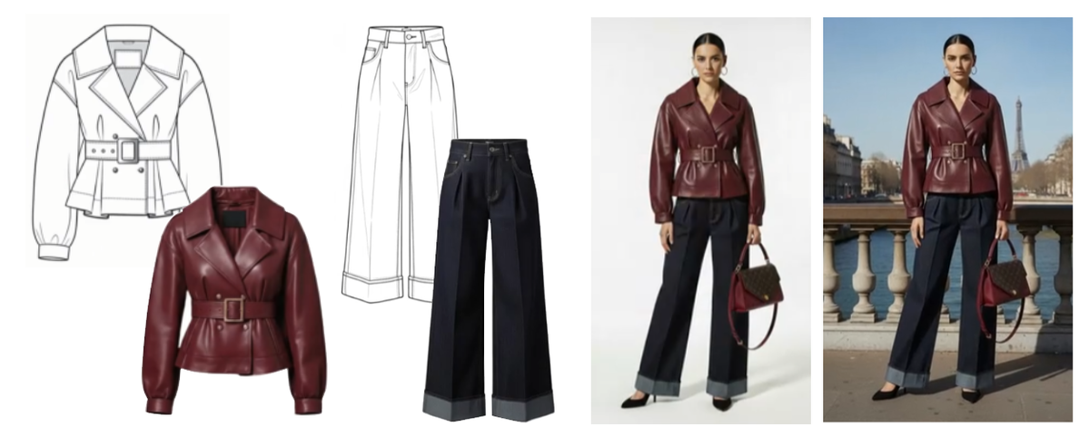 Ваш результат: Примерить изделие на реального человека, вытащить изделие из фото, сделать эскиз в реальных тканях и даже поменять ракурс на фотографии